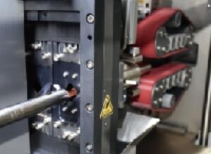 送線采用伺服電機加編碼器的方式,保證導線的裁切長度,送線采用皮帶夾緊輸送,對導線的包覆性強,對導線的外被損傷小,加持力大。剝皮采用成型刀加護刀的方式,最大限度的保證剝皮質(zhì)量。